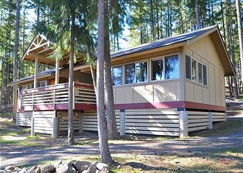 Set amongst the trees above the Main Lodge are 4 cabin duplexes, for a total of 8 individual cabins. Each duplex has an outdoor covered deck for relaxing and taking in the views.